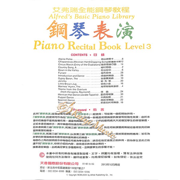 Kaiyi Music 艾弗瑞 鋼琴表演3 Alfred S Basic Piano Recital Book 3 露天拍賣