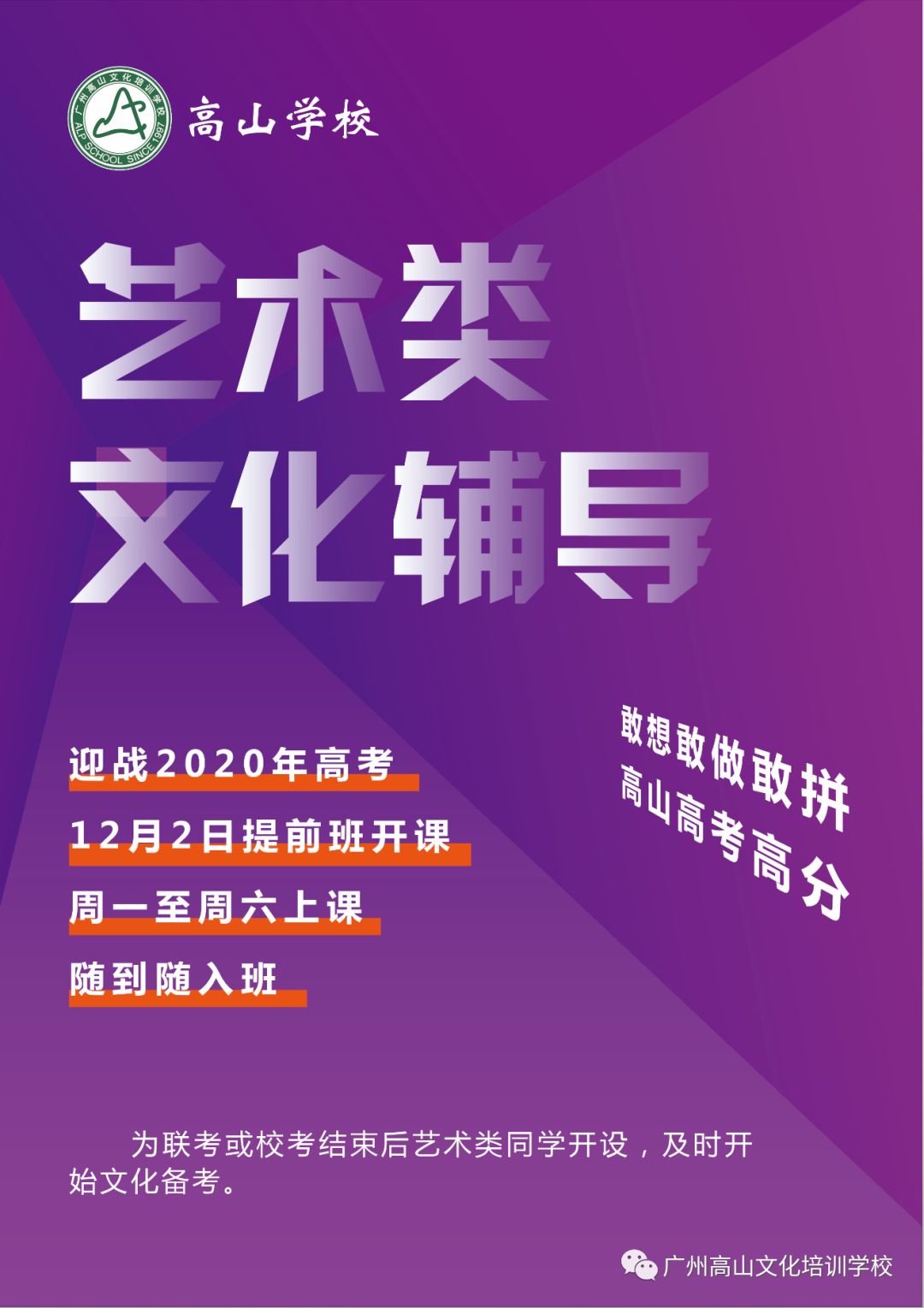 因应2020艺考时间变化 高山学校特别开设艺考文化辅导提前班 广州高山文化培训学校 微信公众号文章阅读 Wemp