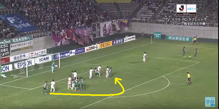 松本山雅のコーナーキックがちょっとだけ珍しい
