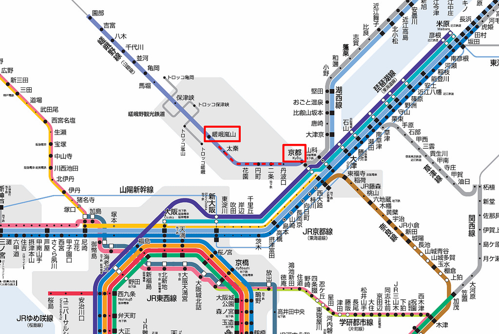 JR京都線JR神戸線湖西線JR宝塚線612KB きのくに線214KB 嵯峨野線琵琶湖線湖西線草津線230KB 奈良線おおさか東線大和路線和歌山線万葉まほろば線470KB 播但線297KB PDFファイルをご覧いただくにはAcrobatReaderが必要です. Jr京都線ジェイアールきょうとせんは西日本旅客鉄道jr西日本が管轄する東海道本線のうち京都府 京都市 下京区の京都駅から大阪府 大阪市 北区の大阪駅までの区間に付けられた愛称である. 山陰本線さんいんほんせんは京都府 京都市 下京区の京都駅から中国地方の日本海沿岸山陰地方を経由し山口県 下関市の幡生駅に至る西日本旅客鉄道jr西日本の鉄道路線幹線である このほか仙崎支線あるいは仙崎線と呼ばれる長門市駅 - 仙崎駅間の支線を持つ.